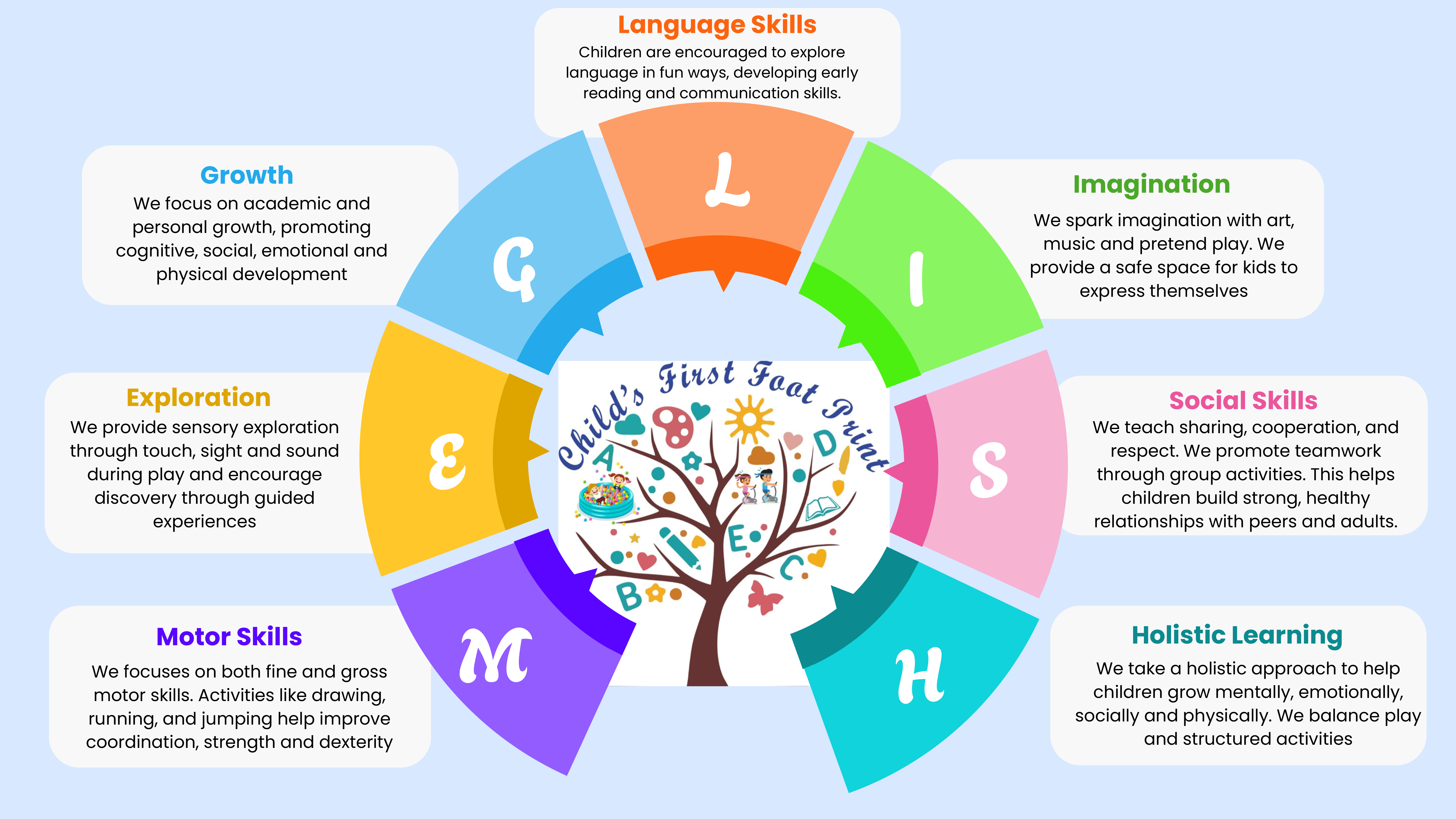 Get Started NowThis M E G L I S H curriculum framework ensures a well-rounded, engaging, and comprehensive early childhood education experience for every child! Our carefully planned programs are led by trained instructors and are designed to develop your child’s social, emotional, fine motor, gross motor and cognitive skills.